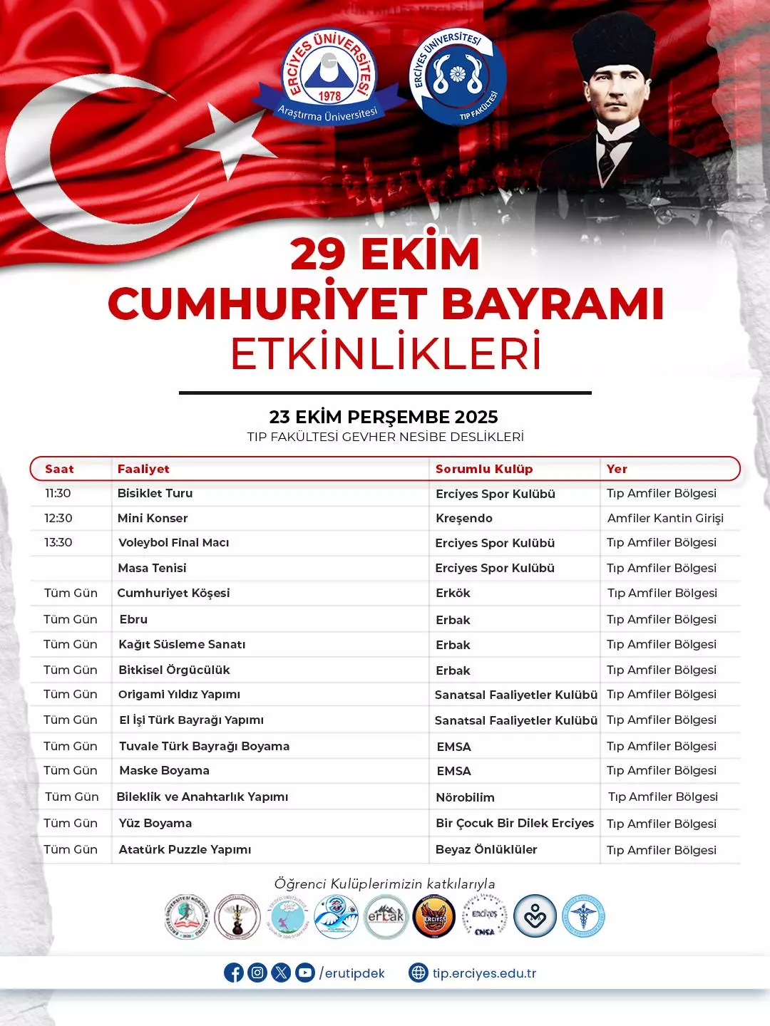 29 Ekim 2025 Cumhuriyet Bayramımı Etkinlikleri