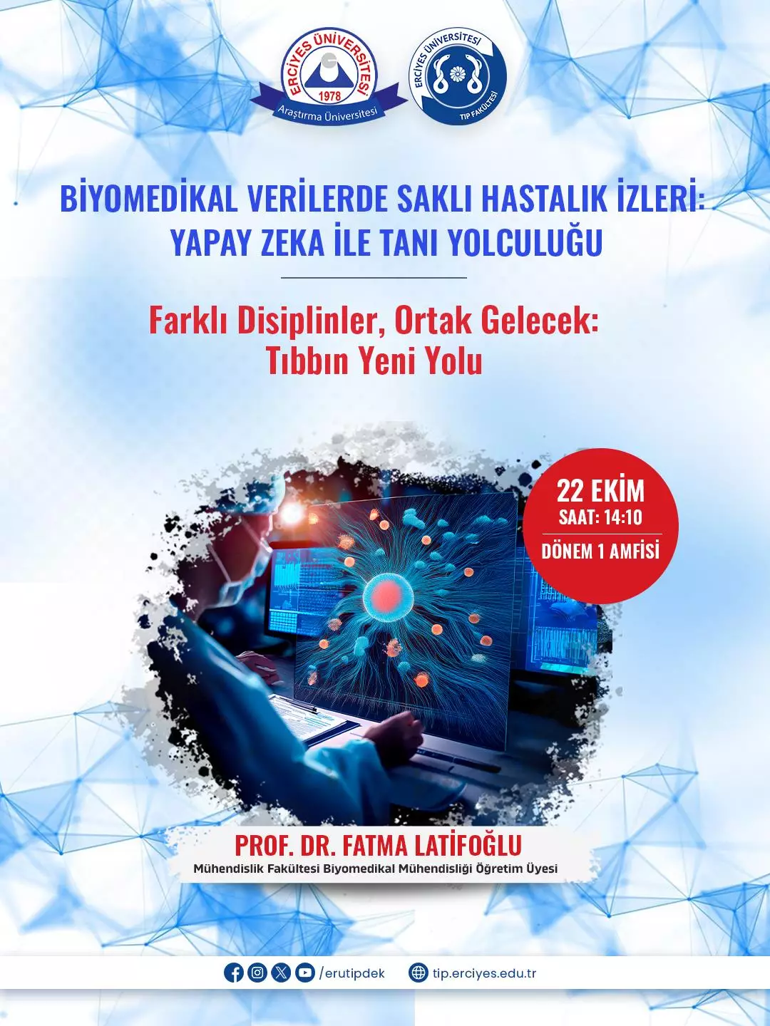 Farklı Disiplinler, Ortak Gelecek: Tıbbın Yeni Yolu dersinde bu hafta Mühendislik Fakültesi Biyomedikal Mühendisliği Öğretim Üyesi Prof. Dr. Fatma Latifoğlu tarafından “Biyomedikal Verilerde Saklı Hastalık İzleri: Yapay Zeka ile Tanı Yolculuğu” anlatılacaktır. Katkı ve katılımınızla değerlenecek bu programa tüm öğretim üyelerimizi ve öğrencilerimizi bekliyoruz.