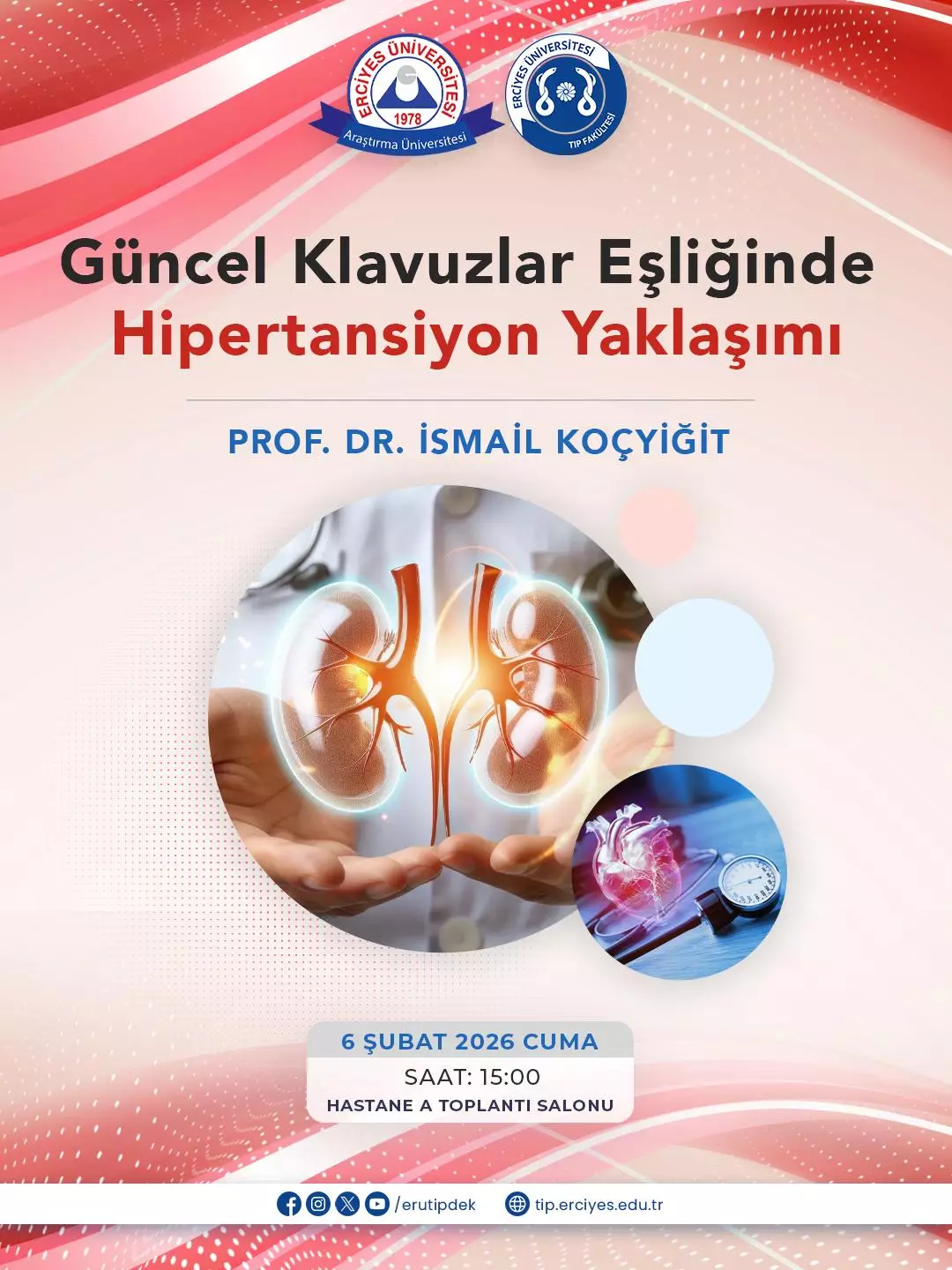İç Hastalıkları Anabilim Dalı Öğretim Üyesi Prof. Dr. İsmail Koçyiğit’in anlatacağı “Güncel Klavuzlar Eşliğinde Hipertansiyon Yaklaşımı” konulu seminerimize tüm öğretim üyelerimiz, araştırma görevlilerimiz ve öğrencilerimiz davetlidir.