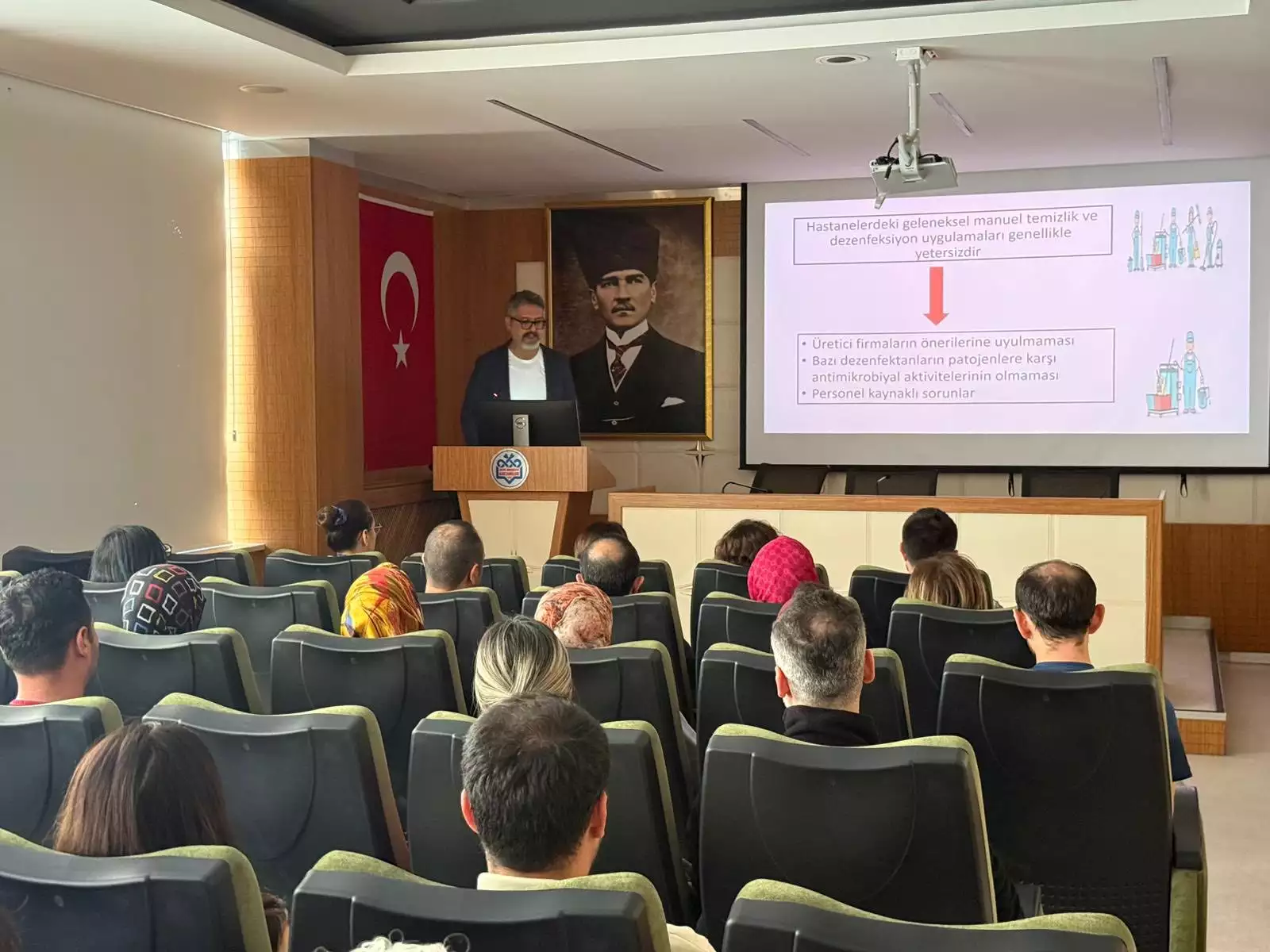 Erciyes Üniversitesi Tıp Fakültesi kurum içi seminer programı kapsamında, Tıbbi Mikrobiyoloji Anabilim Dalı Öğretim Üyesi Prof. Dr. Mustafa Altay Atalay tarafından “Dezenfeksiyon Dünyasında Yeni Ne Var?” başlıklı sunum gerçekleştirildi.