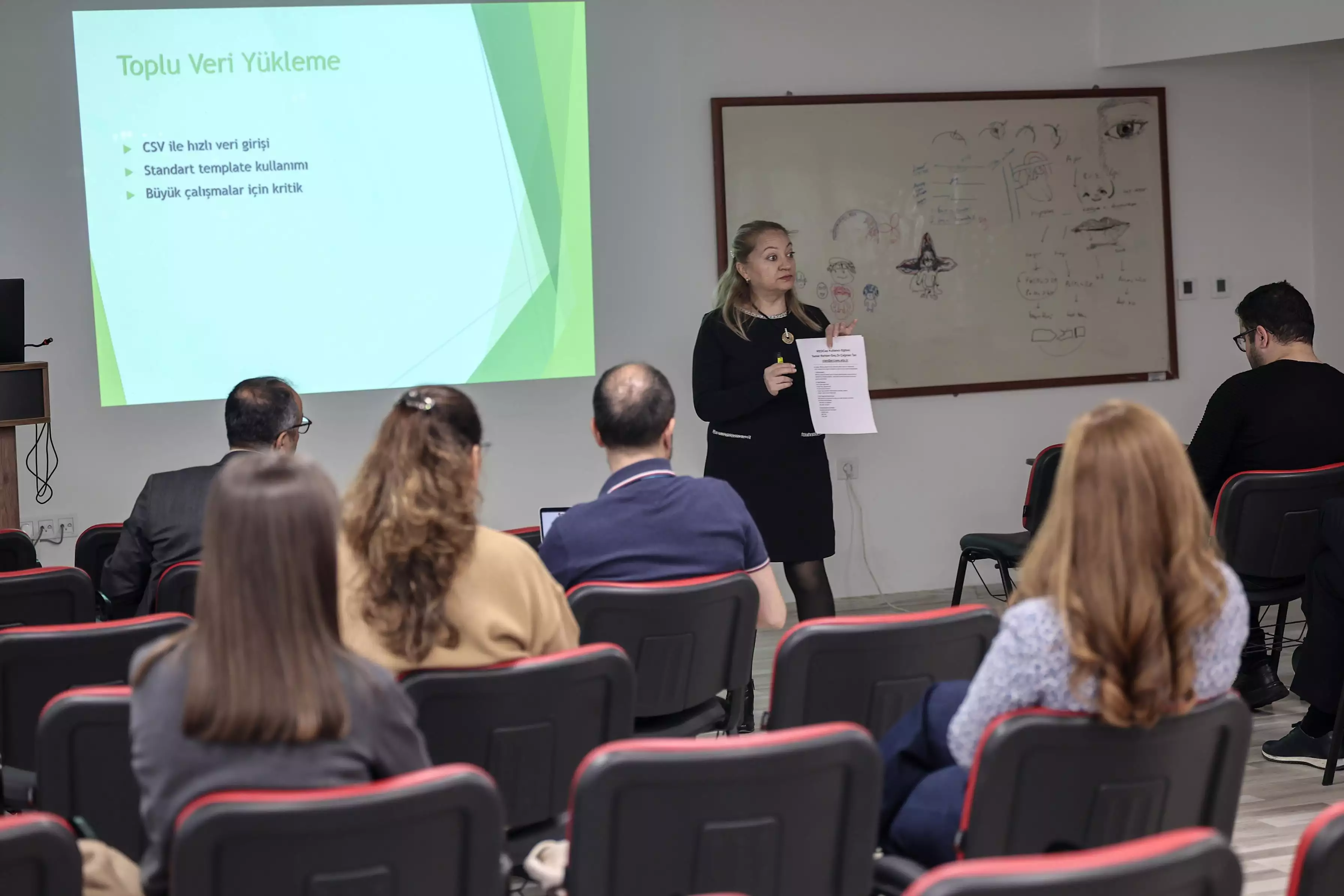 Eğitimde; REDCap kullanımına giriş, veri yönetimi, sistemin temel mantığı, kayıt zaman noktalarının planlanması, form oluşturma süreçleri ve kullanıcı yetkilendirmesi gibi başlıklar ele alındı. Doç. Dr. Çağman Tan tarafından gerçekleştirilen sunumun ardından, katılımcı öğretim üyelerimize programın detayları ve kullanımı uygulamalı olarak aktarıldı.