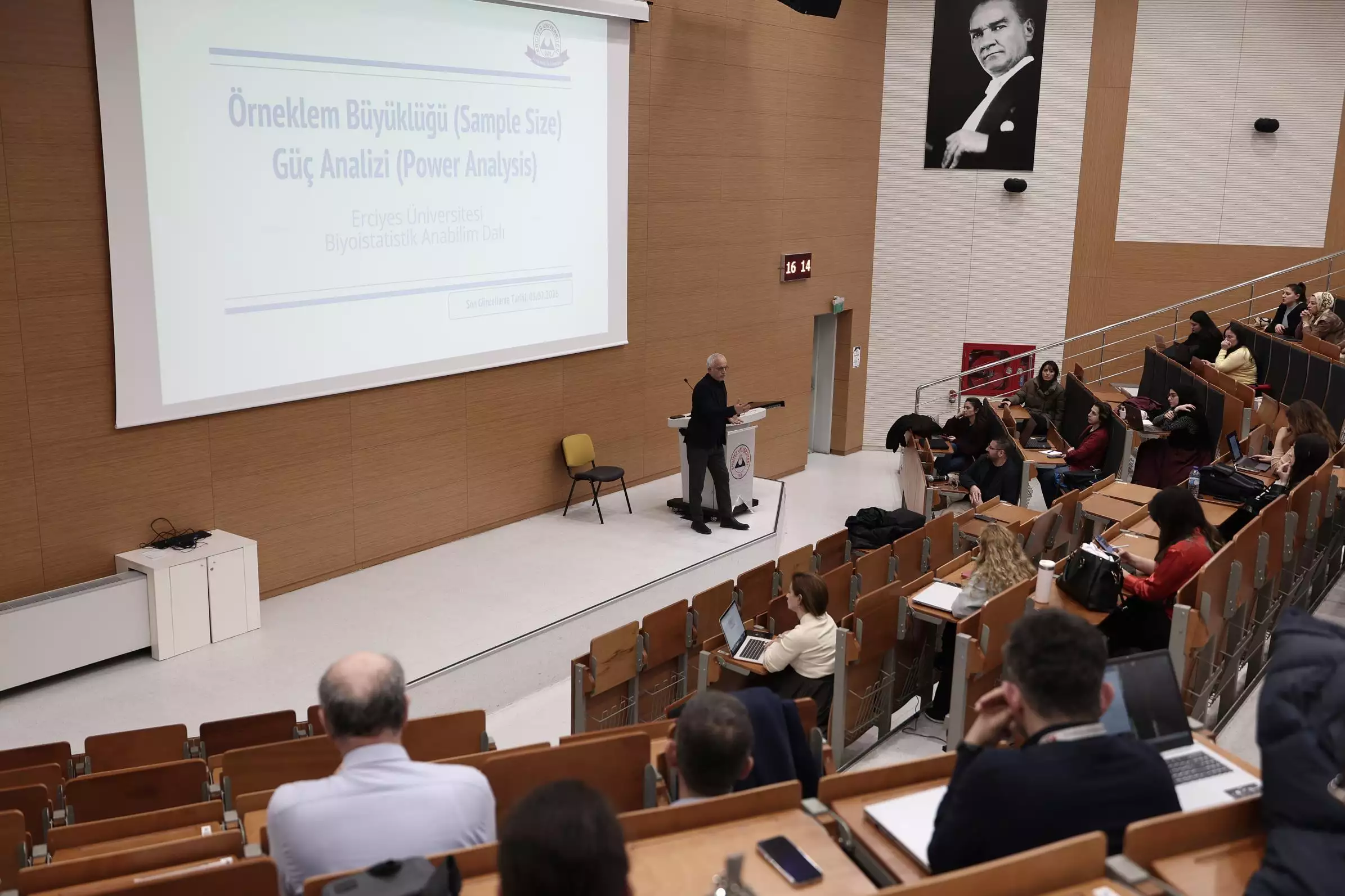 Eğitim serisinin ikinci oturumunda, Prof. Dr. Ahmet Öztürk tarafından “Araştırma Tasarımının Niceliksel Temelleri: Güç Analizi ve Örneklem Büyüklüğü Hesaplaması – I” başlıklı sunum yapıldı. Programda; güç analizinin temelleri, klinik etki büyüklüğünün belirlenmesi, optimum örneklem büyüklüğünün hesaplanması ve pratik uygulamalara ilişkin temel bilgiler katılımcılarla paylaşıldı.